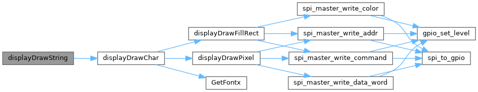 | int | displayDrawString (display_t *display, FontxFile *fx, uint16_t x, uint16_t y, uint8_t *ascii, uint16_t color) |